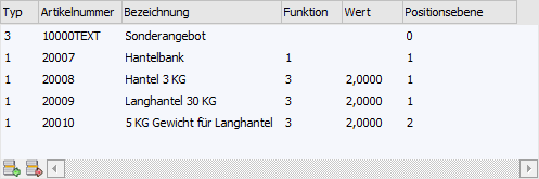 Artikel" bedeutet, dass im Makro eine Artikelzeile eingefügt wird. Diese Zeilen
