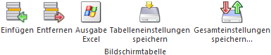 Ø Tabelleneinstellungen speichern