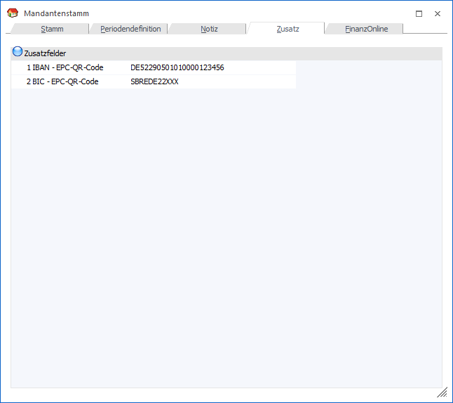 Im Register "Zusatz" des Mandantenstamms können Zusatzfelder des Mandanten hinterlegt werden.