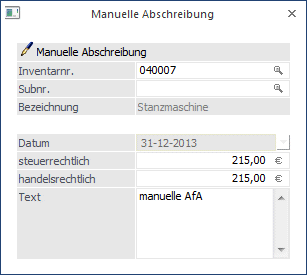 Hier können auch die Beträge bereits erfasster manueller Abschreibungen editiert werden.