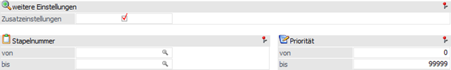 An dieser Stelle kann auf Stapelnummern eingegrenzt werden. Es werden nachfolgend nur Materialentnahmescheine für die Produktionsaufträge erzeugt, welche eine dieser Stapelnummern hinterlegt haben.