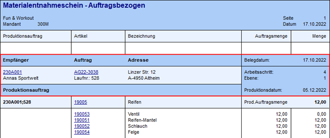 Materialentnahmescheine werden für Produktionsaufträge unabhängig vom