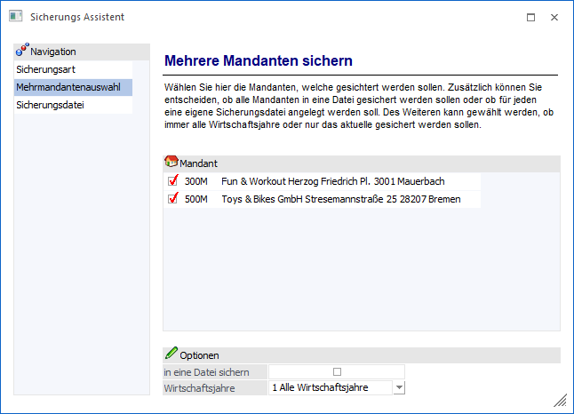 Die Mandanten "300M" und "500M" werden in die Datei MANDANTEN.MBAC gesichert.