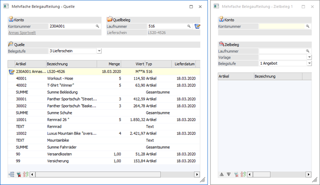 Wenn mehrere Zielbelege gebildet werden sollen, so ist dieses natürlich auch möglich, wobei dies per Button "neue Zielbeleg" initiiert werden kann.