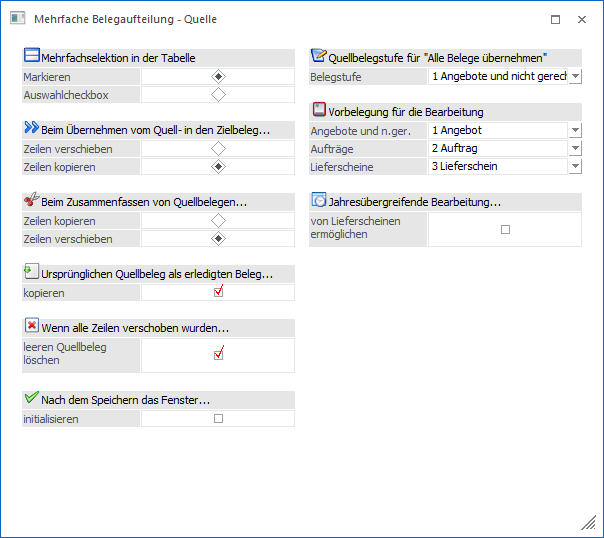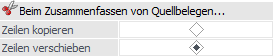 Werden im Bereich im Quellbelege Zeilen aus mehreren Belegen zusammengefasst, so kann durch diese Option bestimmt werden, ob zusammengefasste Zeilen aus dem Quellbeleg in den Zielbeleg kopiert oder verschoben werden sollen.