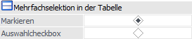 Durch Setzen des Radiobuttons wird festgelegt, ob die Belegzeilen durch Anwählen der einzelnen Zeilen oder durch Aktivieren von Checkboxen selektiert werden sollen.