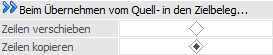 Beim Übernehmen von Zeilen vom Quell- in den Zielbeleg…