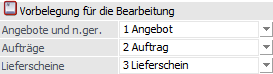 Angebote und nicht gerechnete Belege, Aufträge oder Lieferscheine bei Anwahl des