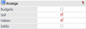 An dieser Stelle kann hinterlegt werden, welche Werte beim Mehrjahresvergleich berücksichtigt werden sollen. Bei der Auswertung für Artikel können "Umsatz", "Rohertrag" und "Budget" verglichen werden. Bei den übrigen Bereichen (Sachkonten, BKZ, usw.) stehen die Werte "Soll", "Haben", "Saldo" und "Budget" zur Verfügung.