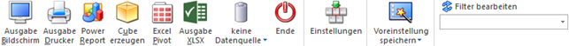 Der Button "Datenquelle verwenden" wird nur angeboten, wenn für diesen Bereich (bezogen auf den aktuellen Benutzer / Mandanten) zumindest eine private oder öffentliche Datenquelle existiert. Des Weiteren stehen die Ausgabevarianten "Ausgabe Bildschirm" und "Ausgabe Drucker" nicht zur Verfügung.