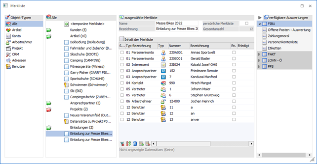 Die Merkliste ist eine ganz spezielle Art von Filter, die in diversen Auswertungen herangezogen werden kann. Merklisten können hierbei individuell mit nur wenigen Mausklicks zusammengestellt werden und zum Beispiel per Drag & Drop auf sehr einfachen Weg bei den verschiedensten Auswertungen hinterlegt werden.