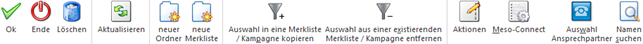 Die selektierten Datensätze können mit Hilfe des Programms Kampagne/Merkliste verändern in eine neue bzw. bestehende Kampagne kopiert werden.