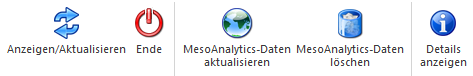Dieser Button steht innerhalb des Registers "Auswahl" zur Verfügung. Über ihn werden in der Tabelle die Spalten "Versendete E-Mails", Geöffnete E-Mails" und "Geklickte Links" aktualisiert und gefüllt. Der Button ist in den anderen Registern des Fensters "MesoAnalytics" ausgegraut. Ein vorheriges Selektieren der Tabelleneinträge ist für diese Aktion nicht notwendig.