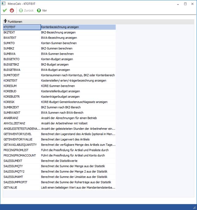 kann die Funktion bzw. die Formel ausgewählt werden, die ausgeführt werden
