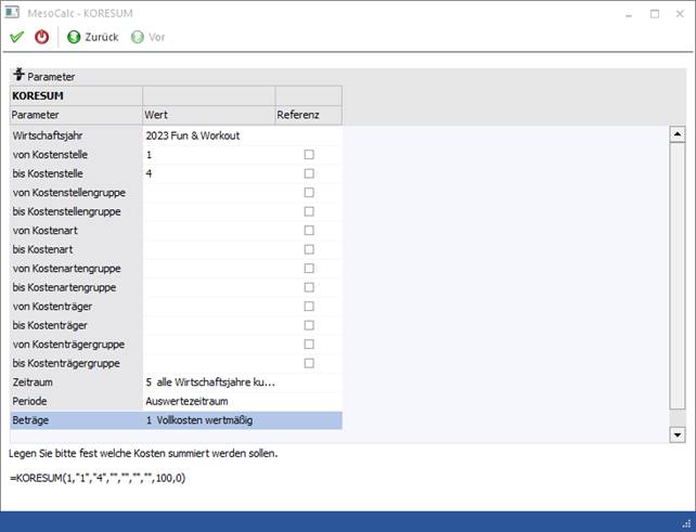 Diese Option ist nur bei der Funktion KORESUM verfügbar