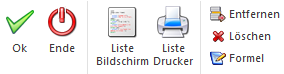 Über Liste Bildschirm, bzw. Liste Drucker können die verschiedenen Buchungsarten sowie ggf. deren Vorbelegung angezeigt werden.