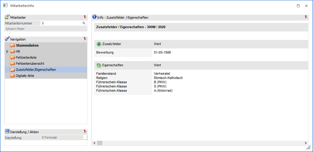In diesem Bereich werden die Zusatzfelder und die Eigenschaften angezeigt, welche beim Mitarbeiter hinterlegt worden sind.