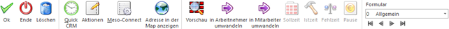 Mit Hilfe des Buttons "Ok" bzw. der Taste F5 werden die Änderungen bzw. Neuanlagen gespeichert, sofern es sich um einen Datensatz des Typs "Mitarbeiter" oder "Bewerber" handelt. "Arbeitnehmer" können hingegen nur dann gespeichert werden, wenn der Mandant als "nicht lohnführend" eingestellt ist (ansonsten ist der Button "Ok" ausgegraut).