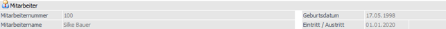 Im oberen Teil des Fensters werden Daten des Mitarbeiters, welche gerade bearbeitet wird angezeigt.