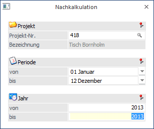 Geben Sie die Periode ein, für die die Nachkalkulation erfolgen soll.