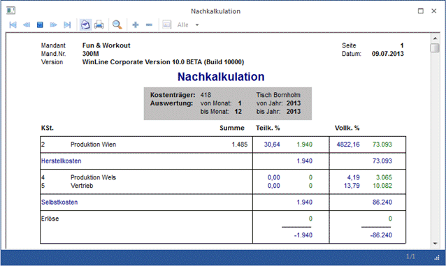ü Unter Vollkosten % werden die Einzelkosten samt Gemeinkosten auf Basis Zuschlagssätze laut BAB zu Vollkosten ausgewiesen. Unter Vollkosten versteht man die Summe der variablen und der fixen Kosten.