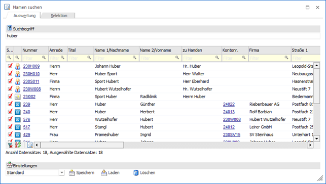 einen Matchcode über alle genannten Datenbereiche. Ausgehend von dieser Suche können auch diverse Aktionen wie Serienbriefe, Mailings und dergleichen mehr durchgeführt werden.