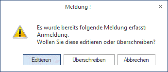 Wenn eine Meldung aufgerufen wurde, die bereits einmal bearbeitet wurde, wird eine Meldung angezeigt, wobei es 3 Möglichkeiten gibt: