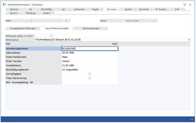 Je nachdem, welche Meldung verwendet werden soll, werden unterschiedliche Felder zur Verfügung gestellt, die jedoch in den meisten Fällen für sich sprechen und daher keine weitere Erklärung benötigen.