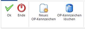 In der Bildschirmtabelle werden alle vorhanden OP-Kennzeichen mit der dazugehörigen Bezeichnung angezeigt und können bearbeitet oder gelöscht bzw. neue Kennzeichen angelegt werden.