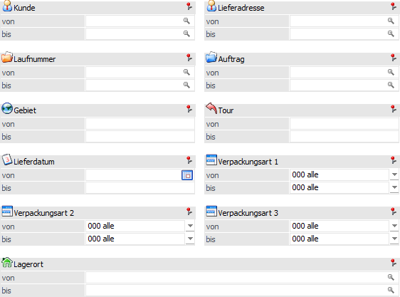 In diesen Feldern kann auf die Lieferadressen eingeschränkt werden, welche in der Packliste berücksichtigt werden sollen.