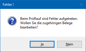 Wird die Meldung mit "Ja" bestätigt, werden die betroffenen Belege in einer Tabelle angezeigt.