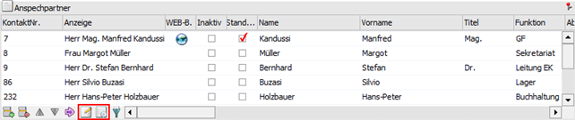 Bei der Tabelle der Ansprechpartner stehen die Tabellenbuttons "Aktionen" und "MesoConnect" zusätzlich zur Verfügung und beziehen sich immer auf den ausgewählten Ansprechpartner.