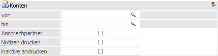 Am dieser Stelle kann eine Einschränkung des Ausgabebereichs über die Kontonummer erfolgen. Je nachdem ob Debitoren oder Kreditoren ausgewertet werden sollen, gibt man hier die erste oder letzte Kunden- bzw. Lieferantennummer ein.