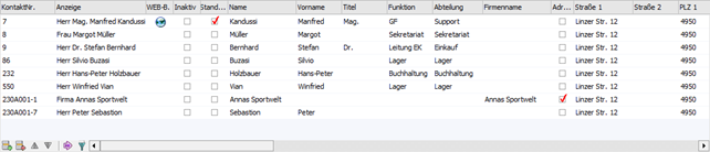 Per Doppelklick auf diese Spalte wird der Kontaktestamm für den ausgewählten Kontakt geöffnet.
