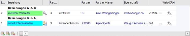 Hier wird die Bezeichnung der Beziehung angezeigt, wobei die Bezeichnung in der Farbe dargestellt wird, welche im Beziehungsstamm hinterlegt wurde.