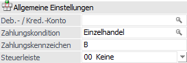Bei der Neuanlage eines Kontos wird die erste Zahlungskondition vorgeschlagen und gespeichert, wenn das Feld "Zahlungskondition" nicht explizit angesprochen wurde. Diese Konditionen können in der Buchungsmaske übersteuert werden.