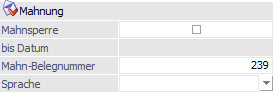 In diesem Feld kann ein Datum eingetragen werden, bis zu dem die Mahnsperre aktiviert bleiben soll. Wird hier kein Datum eingetragen, ist die Mahnsperre unbefristet gültig.