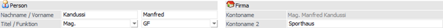 Wird die Option "Person" angewählt so stehen andere Eingabefelder zur Definition des Kontos zur Verfügung als bei "Firmenkonten".