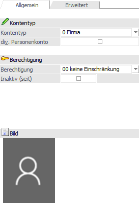 An dieser Stelle wird das Bild des Personenkontos dargestellt. Ein neues Bild kann durch Anwahl des aktuellen Bilds oder mit Hilfe des Buttons "Bildersuche" zugewiesen werden.
