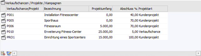 In der Tabelle werden alle Verkaufschance bzw. Projekte angezeigt, in denen das Personenkonto eingetragen wurde.