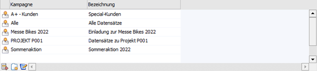 Tabellenbuttons "Kampagnen"