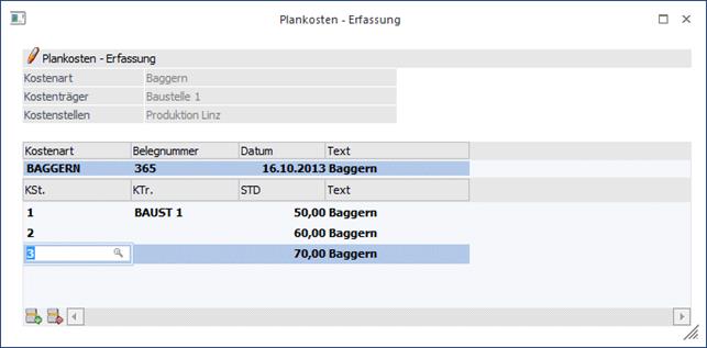 Eintragung einer Plankostenart. Mit dem Matchcode oder F9 gelangen Sie in den Kosten-Matchcode mit der Anzeige aller vorhandenen Plankostenarten. Außerdem wird geprüft, ob der Benutzer die Berechtigung hat (WinLine KORE/Stammdaten/Kostenart), die eingegebene Kostenart zu verwenden.