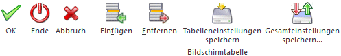 Ø Tabelleneinstellungen speichern