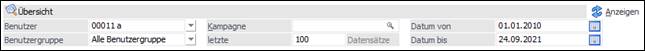 Durch das Anwählen des Buttons werden die folgend aufgeführten Optionen/Selektionen angewendet und zutreffende Datensätze werden in der Tabelle angezeigt.