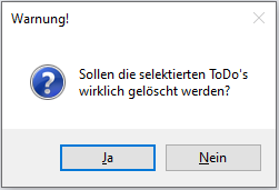 Auch außerhalb des Papierkorbs können Datensätze direkt gelöscht werden: Wird während der Anwahl des Buttons "selektierte Datensätze löschen" die STRG-Taste gedrückt, kommt es analog zur Warnung innerhalb des Papierkorbes zu der o. a. Warnung.