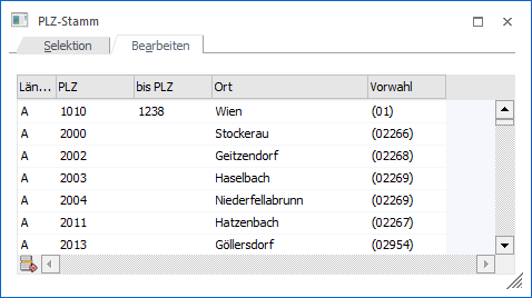 In diesem Fenster ist eine direkte Bearbeitung der Postleitzahlen oder deren einzelne Löschung möglich.