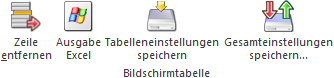 Im Gegensatz zu "Tabelleneinstellungen speichern" können mit "Gesamteinstellungen speichern" mehrere Tabellenaufbauten gespeichert und nach Wunsch geladen werden. Zusätzlich werden Sonderfunktionen der Tabelle (z.B. "Spalte gruppieren") ebenfalls bei der Speicherung bedacht.