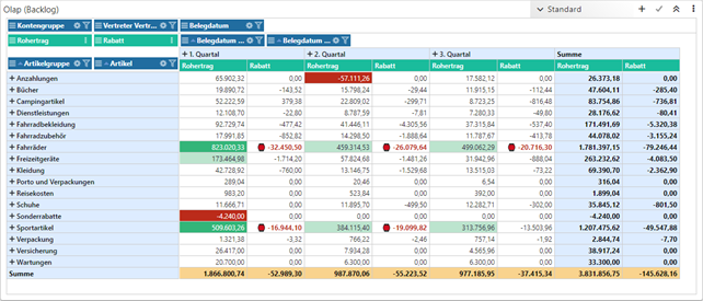 Die Analyse der Daten erfolgt in der Regel durch Betrachtung des Zahlenmaterials, welches je nach Auswertung sehr umfangreich sein kann. Aus diesem Grund stellt der Power Report für die folgenden Widgets Formatierungen zur Verfügung: