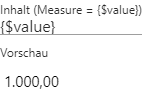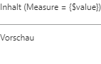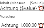 An dieser Stelle kann definiert werden, ob neben der Measure (d.h. der Zahl) noch weiterer Text und / oder ein Symbol angezeigt werden soll. Der Eintrag {$value} dient dabei als Platzhalter für die anzuzeigende Zahl.