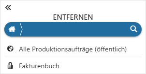 Mit Hilfe des Lupen-Symbols wird der Suchbereich geöffnet. Hier kann durch Eingabe eines Suchbegriffs nach importierten Datenquellen gesucht werden, wobei die Suche in Form einer Volltextsuche erfolgt.